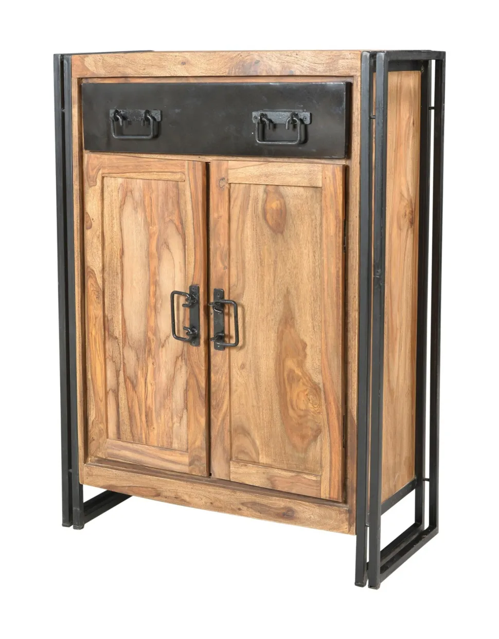 Massief acaciahout ontmoet industrieel metalen beslag in dit compacte highboard. Met een breedte van 75 cm vind je genoeg ruimte. In een lade en achter twee deuren krijg je opbergruimte voor alledaagse dingen. De houten romp van acacia wordt omlijst door een modern metalen frame. De industriële look wordt voortgezet door metalen hulpstukken op de laden en handgrepen en maakt deze hoge ladekast tot een originele blikvanger. De structuur van het hout verschilt van model tot model, zodat elke plank uniek is met zijn eigen charme. Als blikvanger in een eenvoudige ambiance of als onderdeel van een moderne inrichting in een fabrieksontwerp is deze ladekast een chique aanvulling op vele woonstijlen. De moderne mix van materialen combineert de shabby en industriële look.