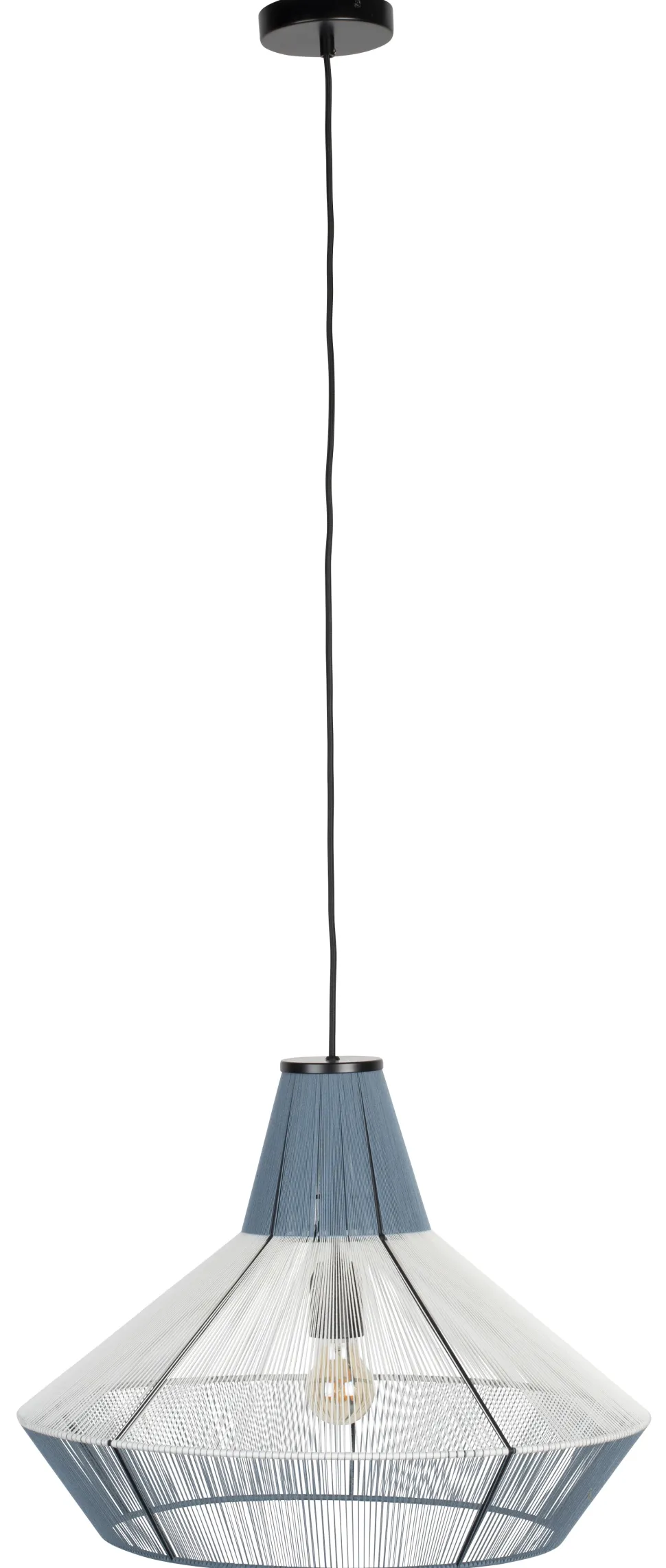 Dunne katoenen draden omsluiten een metalen frame en vormen een lichte nevel rond de lichtgevende kern. De wikkeltechniek en precies geweven draden zorgen voor een gewichtloos armatuur. Deze hanglamp roept een dromerig, feeëriek gevoel op en vult de ruimte met een betoverende gloed.