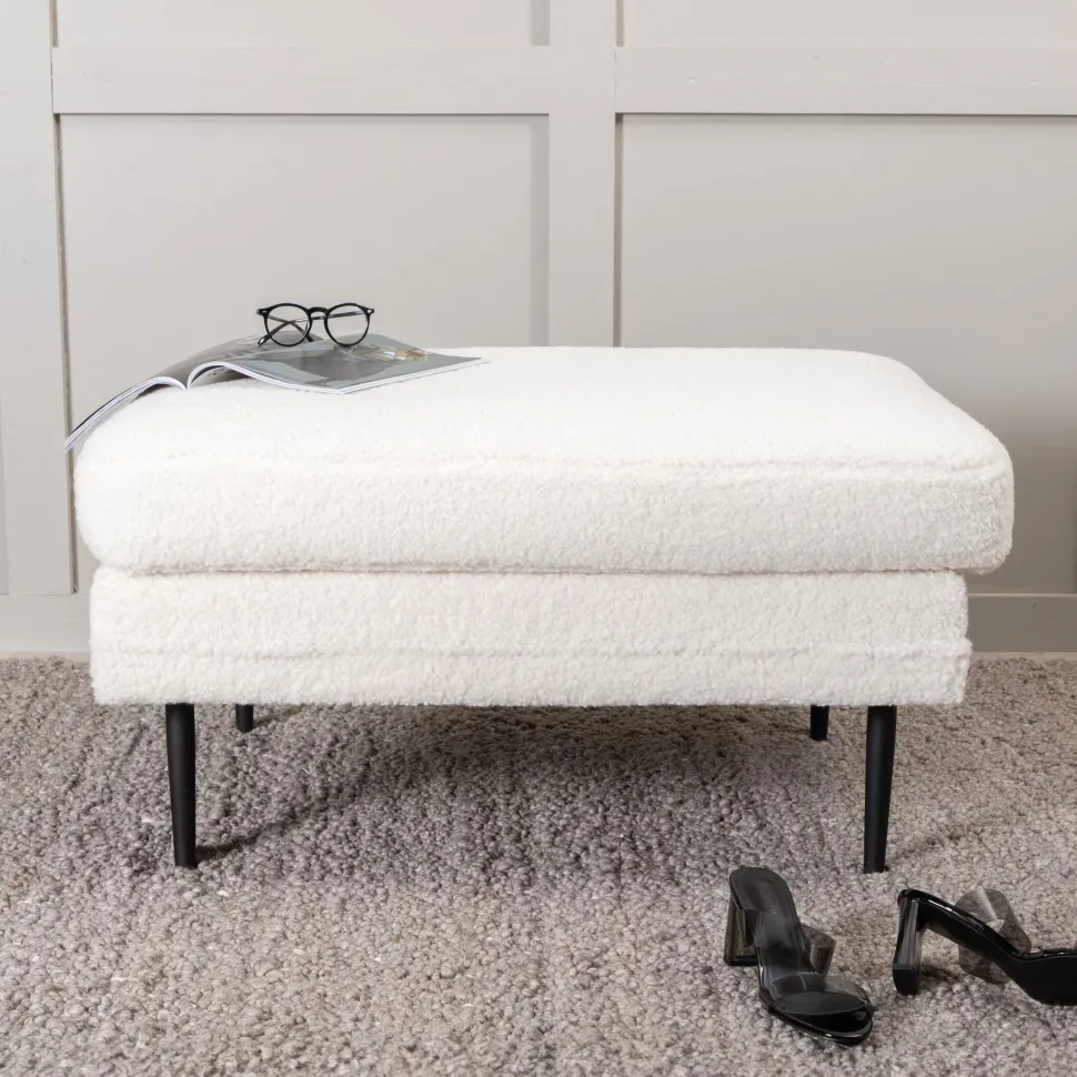 Een trendy interieurdroom die de kamer een warm en uitnodigend gevoel geeft! Deze zitzak uit de Tylan serie maakt indruk met zijn luxe uitstraling en wordt een leuk interieurdetail. Gemaakt van botwit gekleurde knuffel teddy stof, hout en metaal. De zwarte poten van gepoedercoat metaal zijn stijlvol smal en dragen bij aan een luchtige sfeer. Afmetingen Puffs: 85 cm, breedte: 64 cm, hoogte: 47 cm. Hier wordt het strakke Scandinavische design gecombineerd met zachte vormen – alleen in te richten als stijlicoon of samen met onze fauteuils en banken uit dezelfde serie!