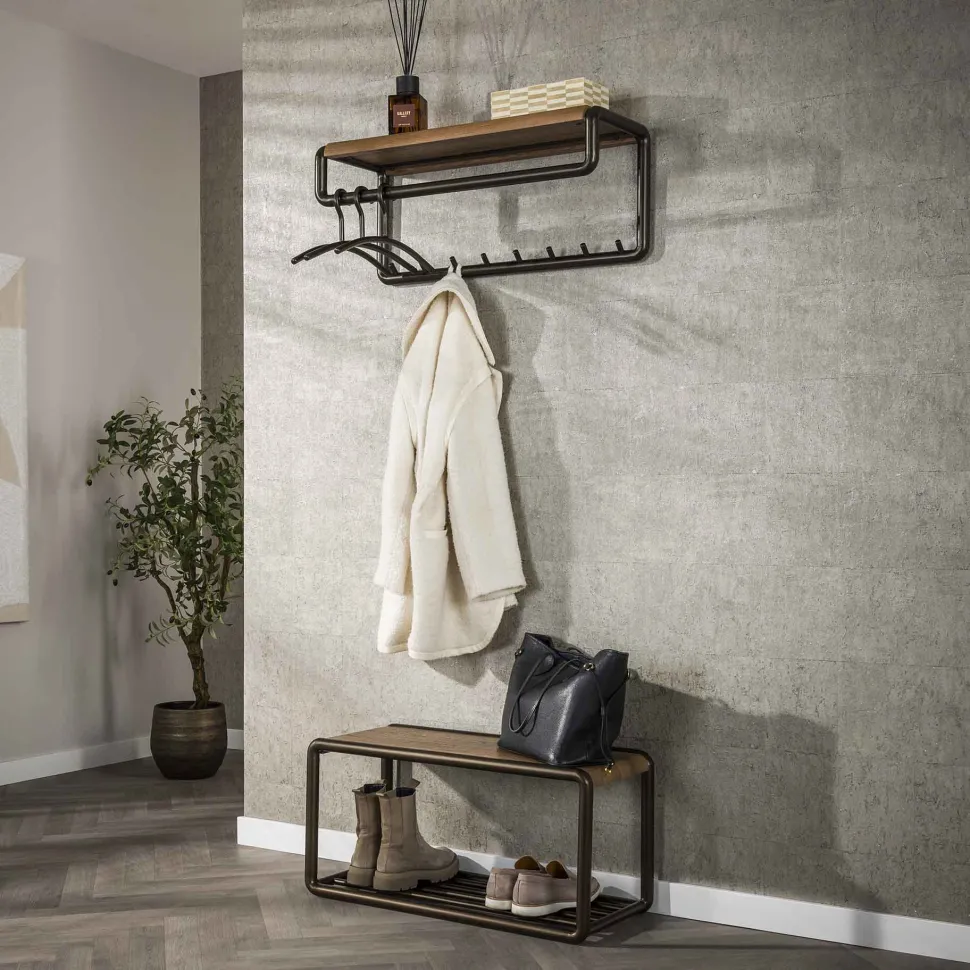 Kapstok Karalynn Met 8 haken en roede, Eikenlook en staal
