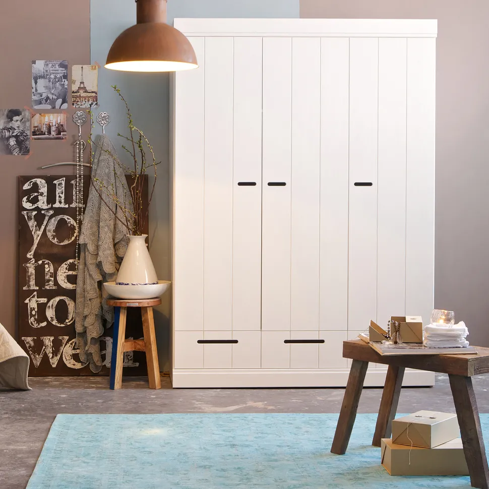 Deze stoere basic kast komt uit de collectie van WOOOD. De 3-drs kast met 3 handige lades zijn voorzien van stevige, metalen ladegeleiders. De romp van de kast is gemaakt van massief grenenhout en de binnenzijde is voorzien van melamine legplanken, praktisch met schoonmaken!