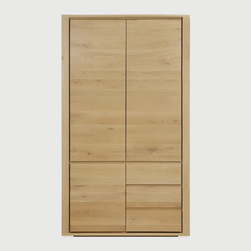 De Ethnicraft kledingkast Shadow uit de premium collectie is een stijlvolle kast van geolied eikenhout. Het ontwerp straalt rust en eenvoud uit en past perfect binnen een Scandinavische woonstijl. De drie deuren en twee ruime lades geven de kast een verfijnde uitstraling en veel opbergmogelijkheden.