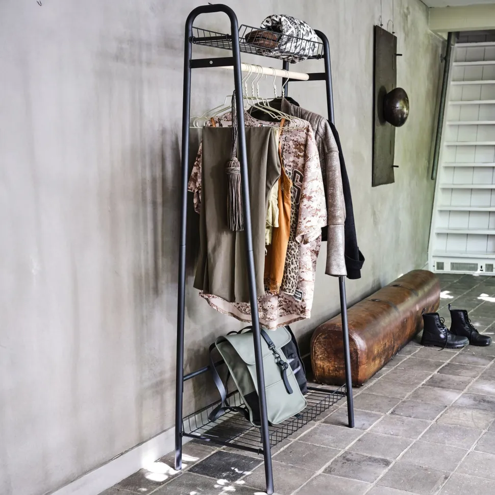 Nog op zoek naar een royale ophangmogelijkheid voor in de slaapkamer of hal? Dan is het Jovi kledingrek, van het Nederlandse interieurmerk WOOOD, een goede optie. Jovi beschikt over een houten roede en twee draadstalen legplanken, deze zorgen voor ruime opbergmogelijkheden.