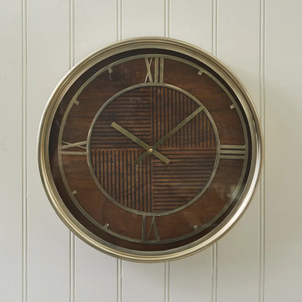 Met deze chique wandklok in huis, ben je altijd op de hoogte van de tijd. De klok heeft een ronde vorm en vier Romeinse cijfers waarmee je de tijd kunt aflezen. Met de messing details en de mooie, mangohouten achterplaat heeft de Sebastiaan Klok een klassieke uitstraling.