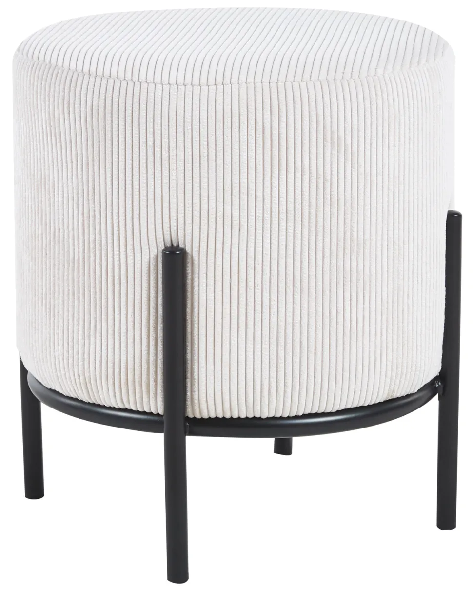 Als er spontane gasten komen, is extra zitruimte altijd een welkome zegen. Als dit er ook nog eens stijlvol uitziet en ruimtebesparend werkt, dan heb je een ideale designgenoot voor bank en zithoek. De kruk in ribfluweellook met een diameter van de zitting van 35 cm biedt precies deze combinatie van aantrekkelijk uiterlijk en functioneel gebruik. Hier kun je extra gasten op laten zitten of je voeten opleggen in volledige ontspanning. De zachte corduroy stof geeft de kruk een moderne uitstraling en de karakteristieke naden zorgen voor een interessante verschijning. Het design frame met hoge poten is gemaakt van gepoedercoat zwart metaal en maakt de look helemaal af.