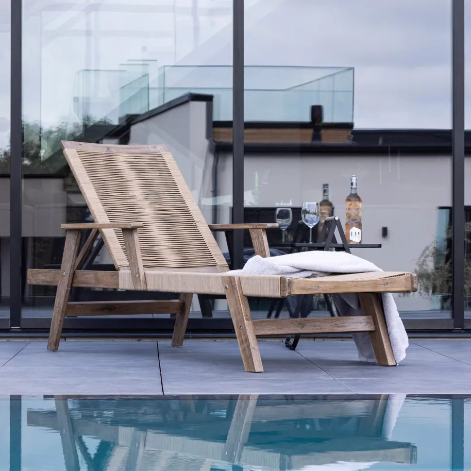 De Izabel ligstoel is verstelbaar, zodat je de meest comfortabele positie kunt vinden terwijl je ontspant onder de zonnestralen. Pak een glas wijn en leun achterover op dit elegante meubelstuk en geniet van ontspanning in zijn puurste vorm.