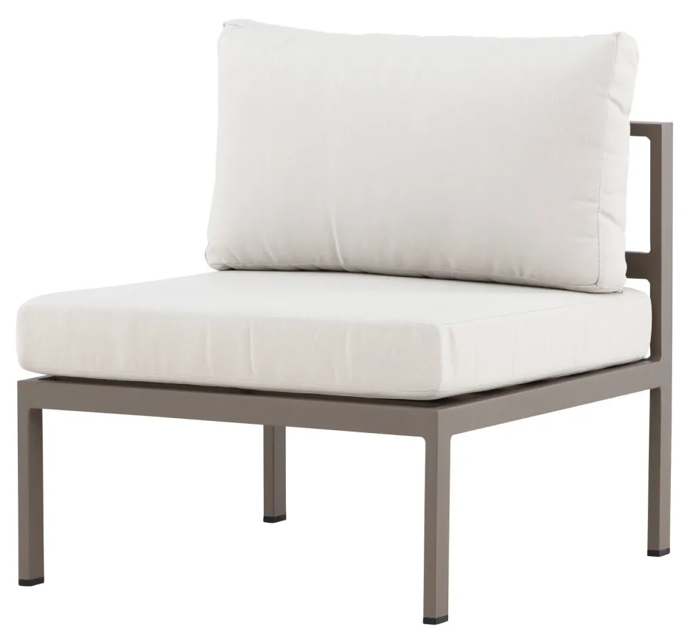 Bouw je droomlounge met de Lasheka zitbankmodule, middendeel. Deze strakke module in een moderne beige kleur is ontworpen om zowel comfort als flexibiliteit te bieden. Met een lichtgewicht en robuust aluminium frame is hij perfect voor buitengebruik en bestand tegen weer en wind. De kussens zijn gemaakt van olefin, een duurzame en weerbestendige stof, en hebben dezelfde harmonieuze beige tint voor een samenhangende en uitnodigende look.