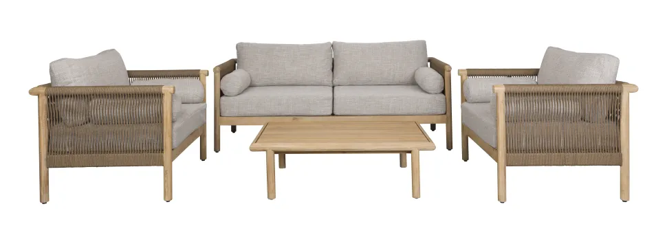 Loungeset Oasis Acaciahout en touw, Met tuinbank, 2 loungestoelen en loungetafel