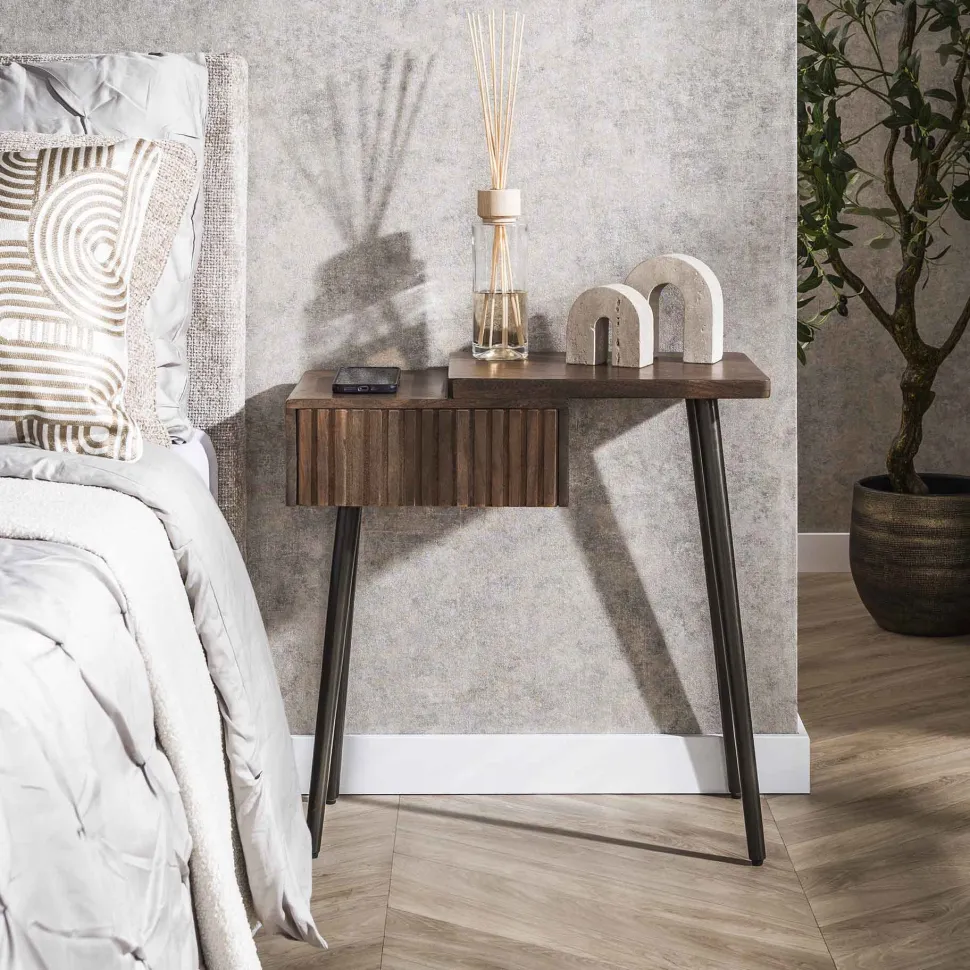 Nachtkastje Alania Met 1 lade en legplank, Acaciahout