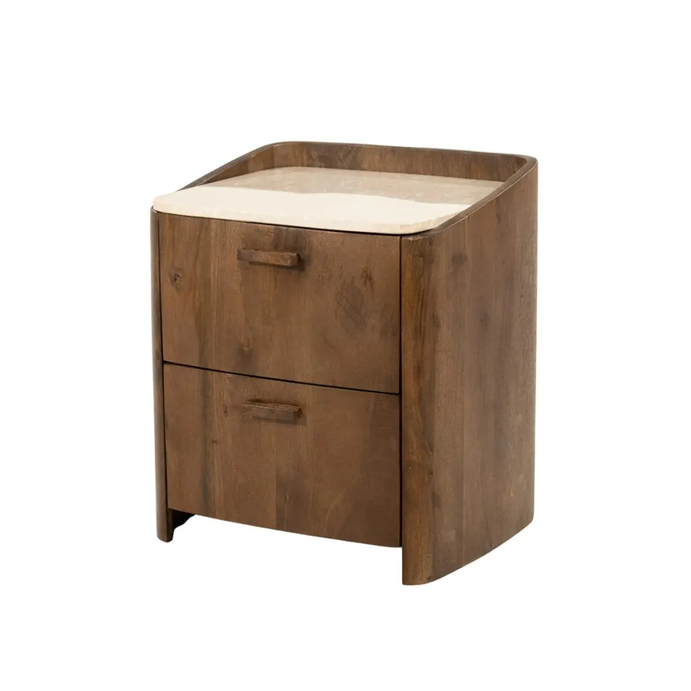 Nachtkastje Mabel Marmer en mangohout, Met 2 lades
