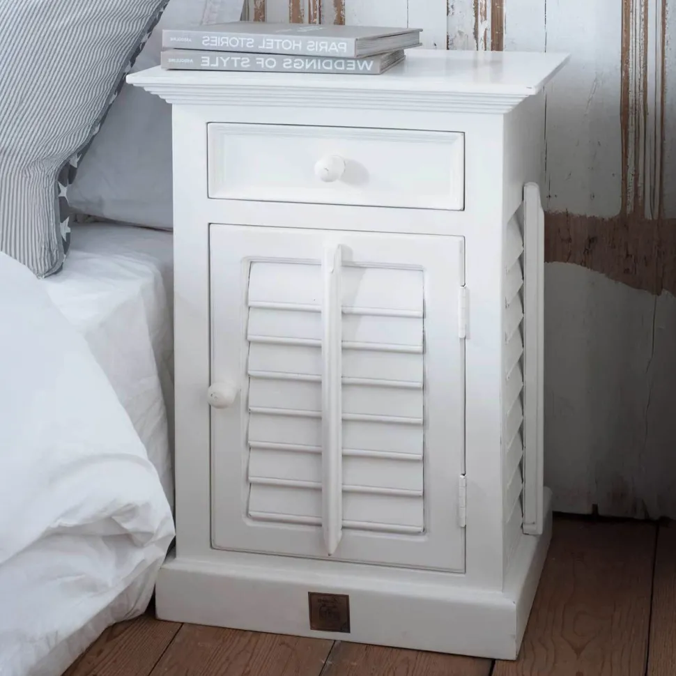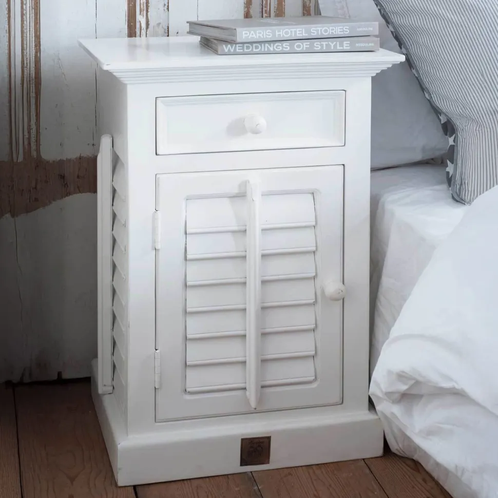 New Orleans is de grootste stad van de Amerikaanse staat Louisiana. De stad ligt aan de oevers van de rivier de Mississippi. Dit nachtkastje van acaciahout is voorzien van shutters en bestemd voor aan de rechterkant van het bed.