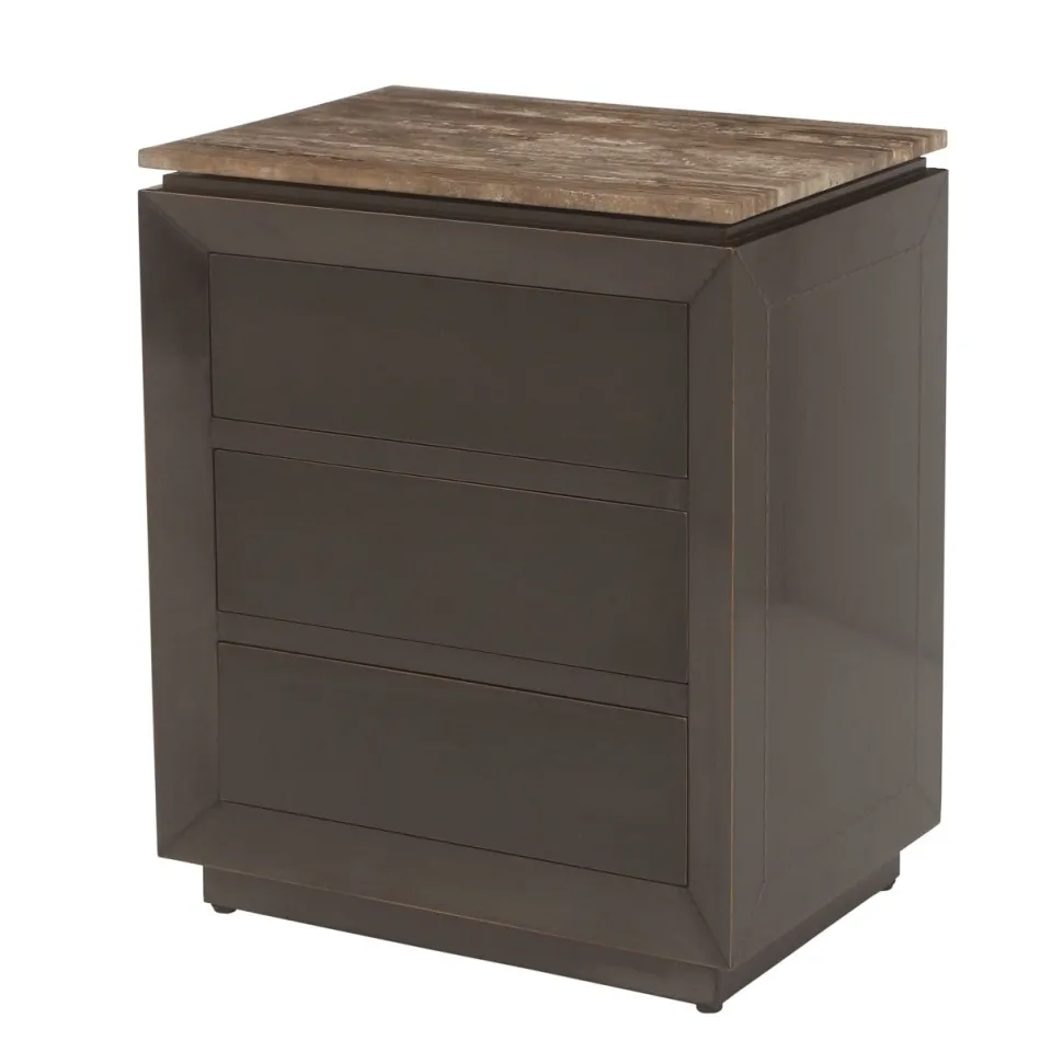 Nachtkastje Russo Travertin en brass, Met 3 lades