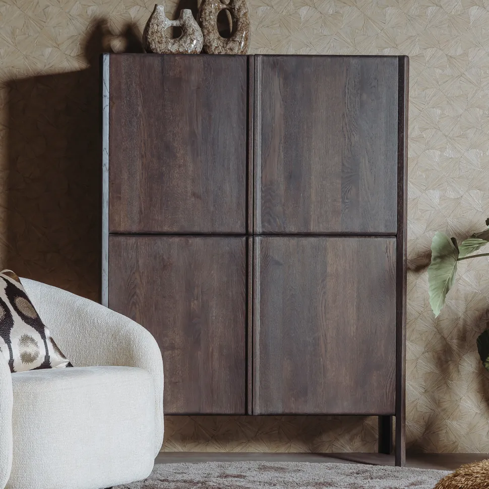| Materiaal: | Eikenfineer met massief eikenhouten fronten en poten |
