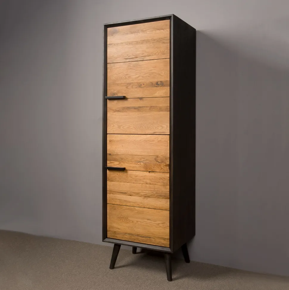 Bresso is een opvallende verschijning, tussen de vele industriële woonprogramma’s. De collectie is vernieuwend en kenmerkt zich door de unieke indeling, de massief eiken deuren en de retro poot. De deuren en lades sluiten met een soft-close systeem. De kleurcombinatie, bestaande uit twee warme bruine tinten, geeft de meubelen zijn charme.