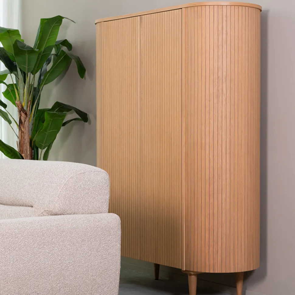 Hoge Kast Oliva van LABEL51 is een prachtig meubel uitgevoerd in eikenfineer. Een speels vormgegeven meubel waar al jouw spullen stijlvol in kunnen worden opgeborgen.