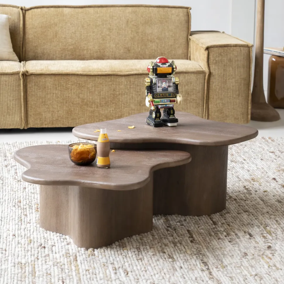 Organische Salontafel Fall Mangohout, Set van 2 stuks