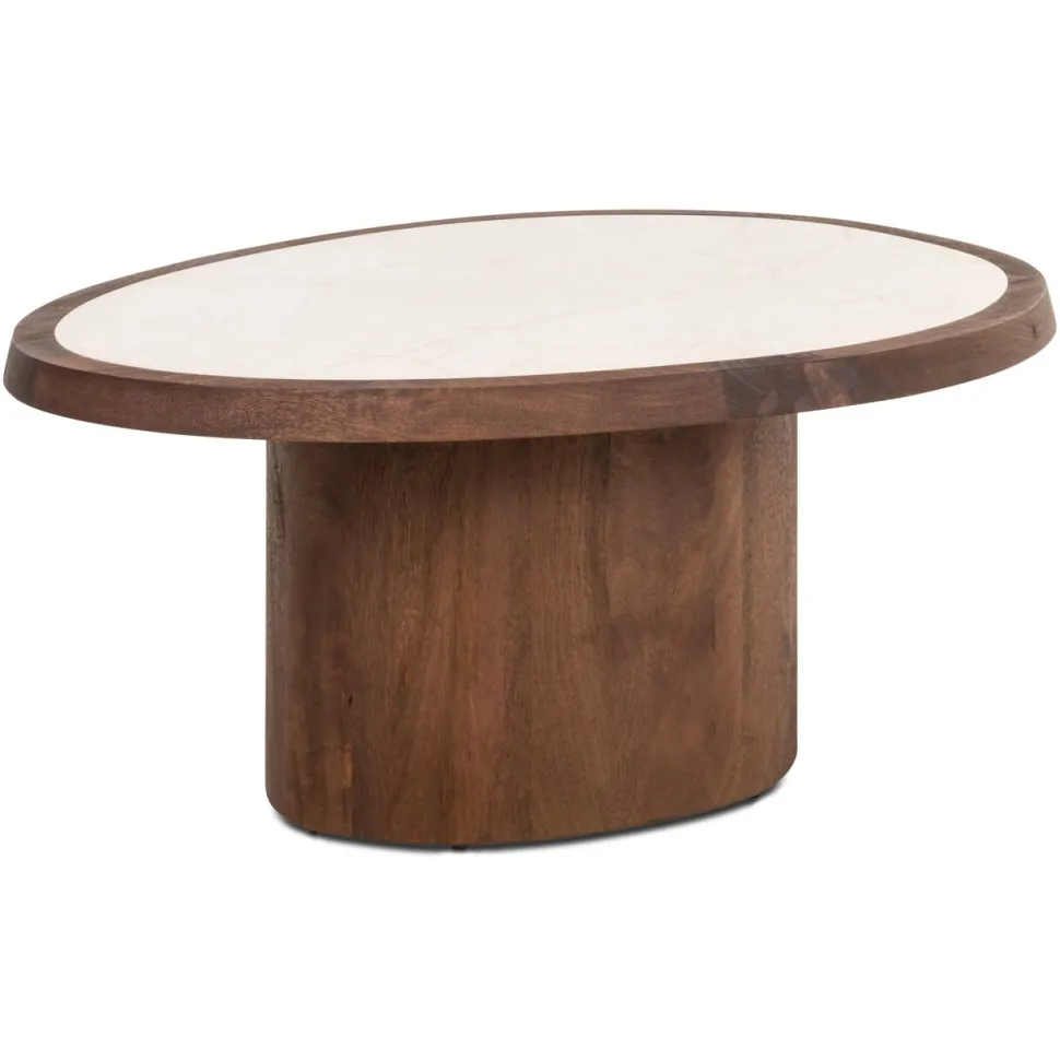 Organische Salontafel Melrose Marmer en mangohout, 90 x 70cm