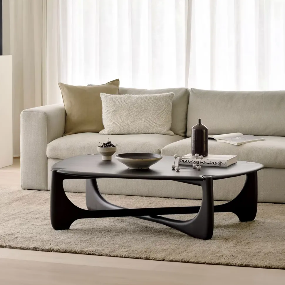 De PI collectie eert het ontwerp van de natuur, door de kracht, de rondingen en lijnen te behouden, zoals de natuur het bedoeld heeft. Interessante vormen worden ontdekt in deze slanke en stijlvolle, gepolijste doch onvolmaakte afwerking. Elk PI stuk wordt met de hand afgewerkt om ervoor te zorgen dat het individuele karakter van het hout wordt gerespecteerd. De PI koffietafel is de ideale plek voor een drankje, lichte lectuur en andere benodigdheden.