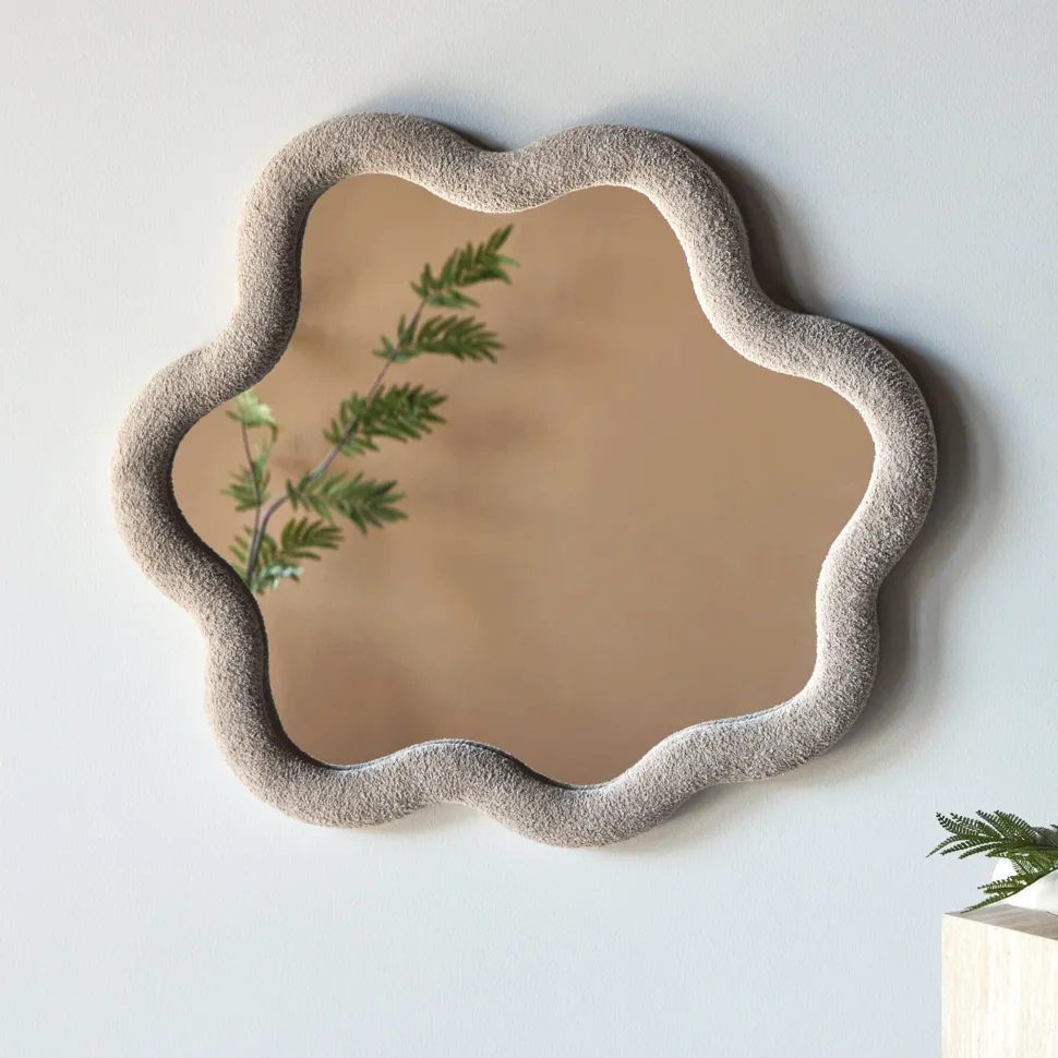Laten we Tho voorstellen – een spiegel die durft op te vallen met zijn speelse, golvende vorm en zachte uitdrukking. Met zijn ronde lijnen creëert hij een harmonieus gevoel en voegt hij een charmante rust toe aan zowel de hal als de kamer waarin hij wordt geplaatst.