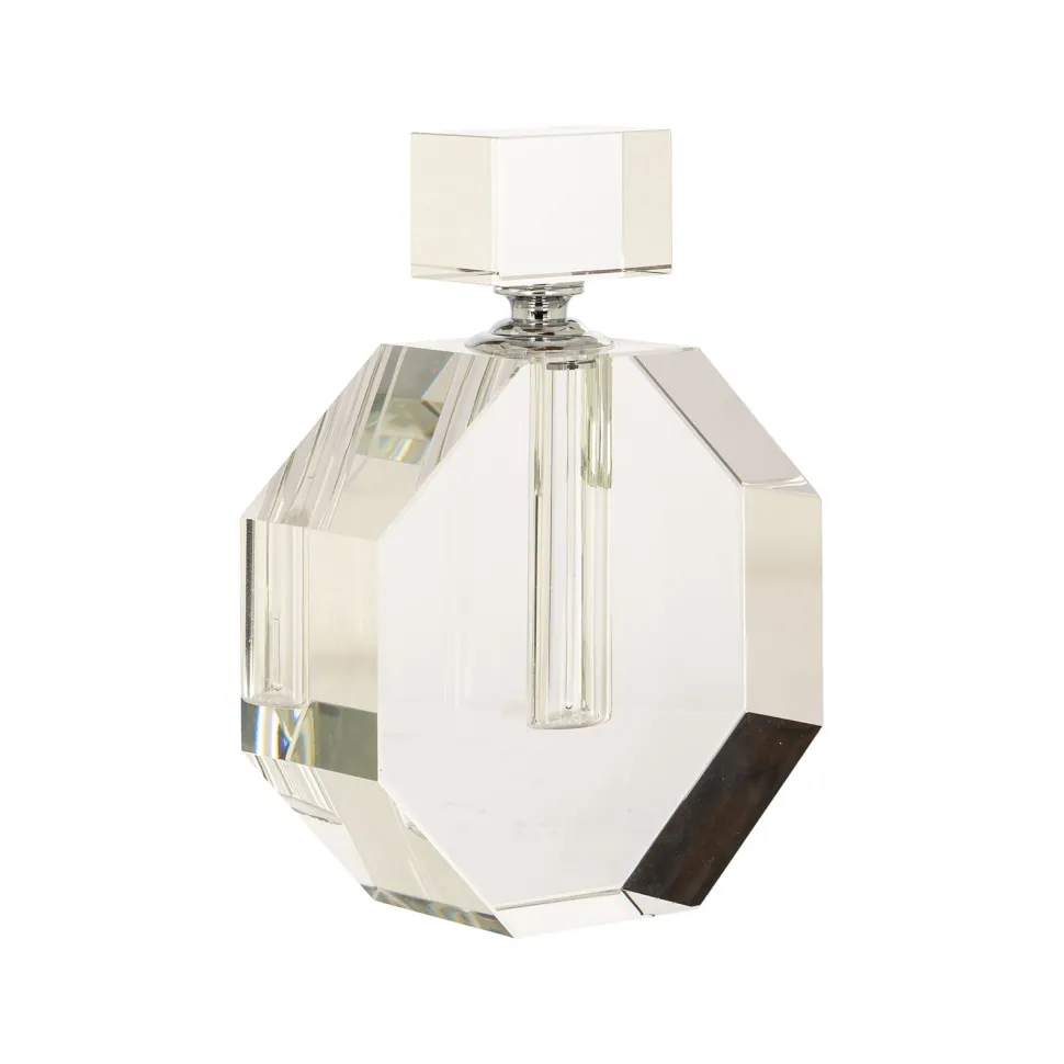 Een symbool van luxe en verfijning. Deze prachtige parfumfles, gemaakt van het zuiverste kristal, straalt elegantie uit. Elk facet van het kristal vangt het licht op een unieke manier, waardoor er een betoverende schittering ontstaat. Deze fles is niet alleen een container voor uw favoriete parfum, maar ook een pronkstuk voor elke kaptafel of displaykast.