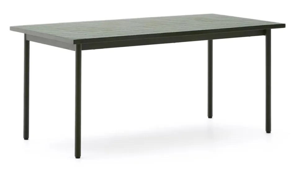 Deze tafel, exclusief ontworpen door Yonoh Studio voor Kave Home, vindt de mediterrane essentie opnieuw uit door middel van een eigentijdse en levendige benadering. Het blad bestaat uit een mozaïek van geometrische tegels en is een eerbetoon aan traditioneel vakmanschap: elke tegel is zorgvuldig met de hand geplaatst. De gegalvaniseerde stalen structuur voegt een modern tintje toe en is bestand tegen roest en corrosie, wat een hoge duurzaamheid garandeert. De plastic beschermers onder de poten beschermen elk type vloer, waardoor hij perfect is voor zowel binnen als buiten. Dit meubelstuk maakt deel uit van de Maurina collectie, die de schoonheid van traditionele materialen en vakmanschap combineert met eigentijdse lijnen, ideaal voor wie op zoek is naar een balans tussen tijdloos en eigentijds in huis.