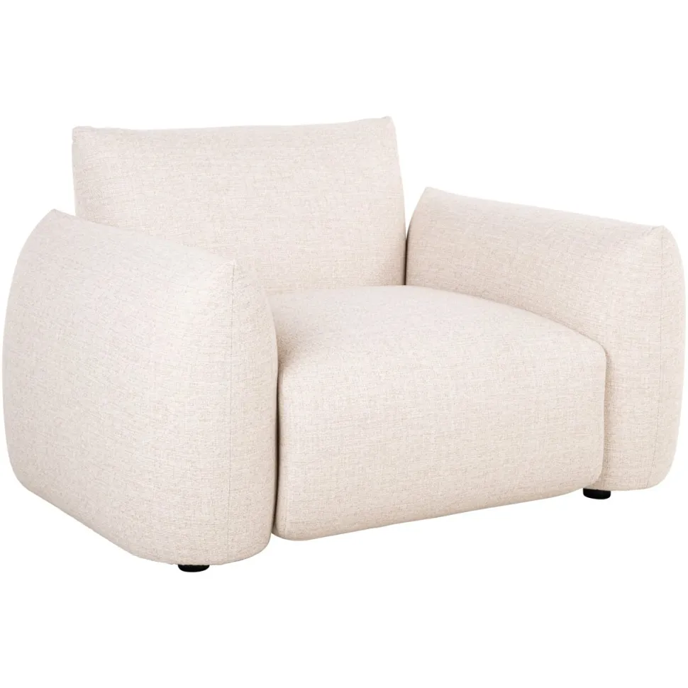 Lounge stoel Dawson in beige alpine heeft outdoor-geschikte stof, een gepoedercoat aluminium frame en quick-dry kussens voor langdurig comfort. Ook verkrijgbaar in greige alpine.