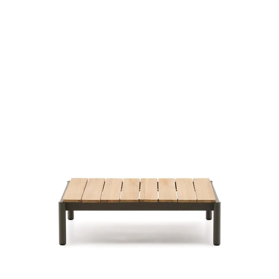 Aquí tienes el texto revisado para sonar más natural en neerlandés: De salontafel van aluminium met een teakhouten blad is een meubelstuk dat functionaliteit, design en duurzaamheid combineert om elke buitenruimte te verfraaien. Exclusief ontworpen voor Kave Home door Made Studio, heeft de tafel een lichtgewicht aluminium frame dat tegelijkertijd zeer sterk is. Dit maakt het ideaal voor langdurig gebruik buiten, aangezien het bestand is tegen oxidatie, corrosie en de schadelijke effecten van UV-stralen. Het teakhouten blad voegt een extra dosis verfijning en warmte toe, en staat bekend om zijn uitzonderlijke weerstand en duurzaamheid in buitenomgevingen. Dit edele materiaal is perfect bestand tegen vocht, waardoor het zelfs onder de meest veeleisende omstandigheden zijn kracht behoudt. Met een ontwerp dat gericht is op veelzijdigheid, kan deze tafel perfect worden gecombineerd met andere tafels uit dezelfde collectie. Zo kun je sets van verschillende hoogtes creëren die passen bij jouw stijl en wensen. Het elegante afwerkingsniveau geeft een frisse, moderne uitstraling en past moeiteloos in elke buitenomgeving. Het is het ideale meubel voor wie op zoek is naar tijdloos design, zonder concessies te doen aan kwaliteit of functionaliteit. Met Sorells stel je jouw ideale bank samen, door de modulaire elementen af te stemmen op jouw persoonlijke behoeften en levensstijl. Het is de perfecte combinatie van modern design, hoogwaardige materialen en comfort, die jouw buitenmomenten opnieuw definieert.