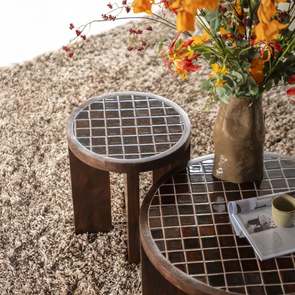 Ronde Bijzettafel TiledUp Keramiek en mangohout, 40cm