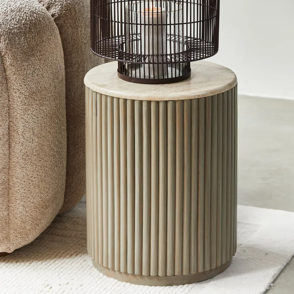 Ronde Bijzettafel Villanova Travertin en mangohout, 42cm
