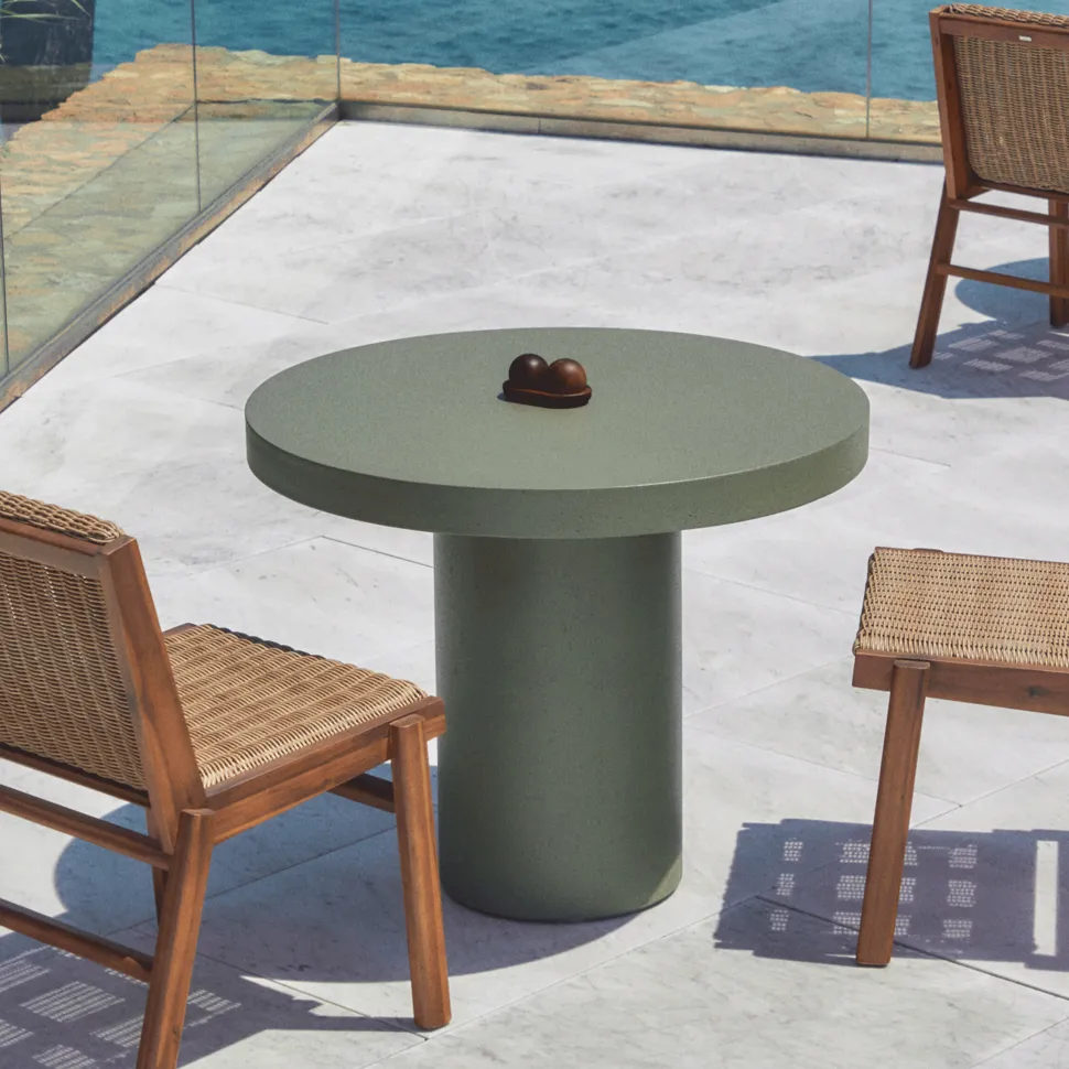 De Aiguablava collectie combineert functionaliteit en design op zijn best. Geïnspireerd door de puurheid van het minimalisme en met eenvoudige lijnen wordt dit meubel de ziel van elke omgeving en zorgt het zowel binnen als buiten voor een unieke persoonlijkheid. Gemaakt van GFRC (glasvezelversterkt beton), een materiaal dat zich onderscheidt door weerbestendigheid, lichtheid en duurzaamheid. Deze tafel is ontworpen om jarenlang dezelfde charme te behouden als op de eerste dag. Elke Aiguablava tafel is een exclusief element dankzij de unieke tinten, texturen en porositeiten die ontstaan tijdens de productie. De getextureerde afwerking met een glazuur dat de kleur versterkt en de nerven van het beton onthult, maakt van deze tafel een functioneel kunstwerk. Bovendien is de pigmentatie geïntegreerd in het mengsel, waardoor een diepe kleur wordt gegarandeerd die bestand is tegen de tand des tijds, en wordt slijtage van het oppervlak, zoals bij andere technieken, vermeden. Kleine onregelmatigheden, zoals microscheurtjes of zichtbare poriën op de randen en de basis, maken deel uit van de esthetische taal van het beton en hebben geen invloed op de integriteit van het product. Om het uiterlijk te behouden, wordt aangeraden om hem in de herfst en winter te beschermen met een waterdichte laag en twee keer per jaar Sterina steenbeschermer aan te brengen.