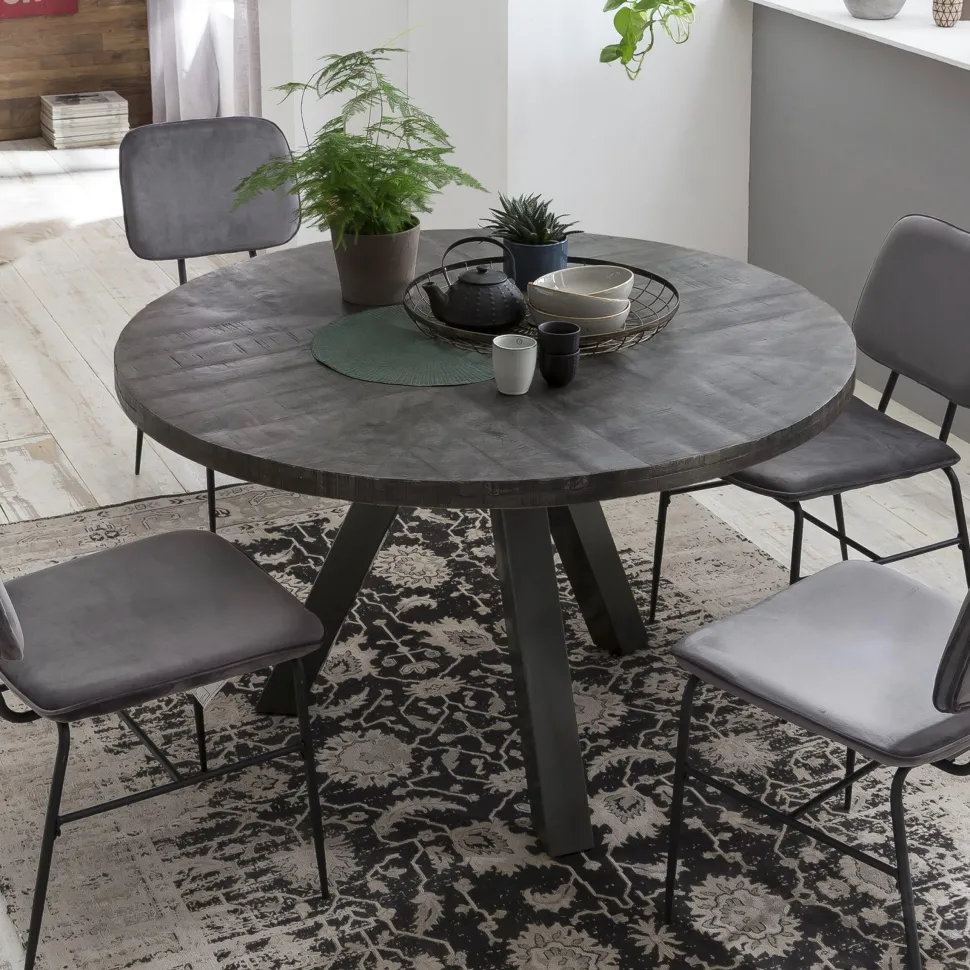 Ronde tafels zijn momenteel erg populair. Dat is begrijpelijk, want gezelligheid en comfortabel samenzijn ontstaan bijna vanzelf met deze herontdekte tafelvorm. Het mangohout is hier gezaagd verwerkt, wat een ongelooflijk mooie nerf oplevert zonder de bruikbaarheid te beperken. In combinatie met het stabiele metalen frame en het sterke tafelblad krijgt de ronde tafel een geheel nieuwe betekenis.