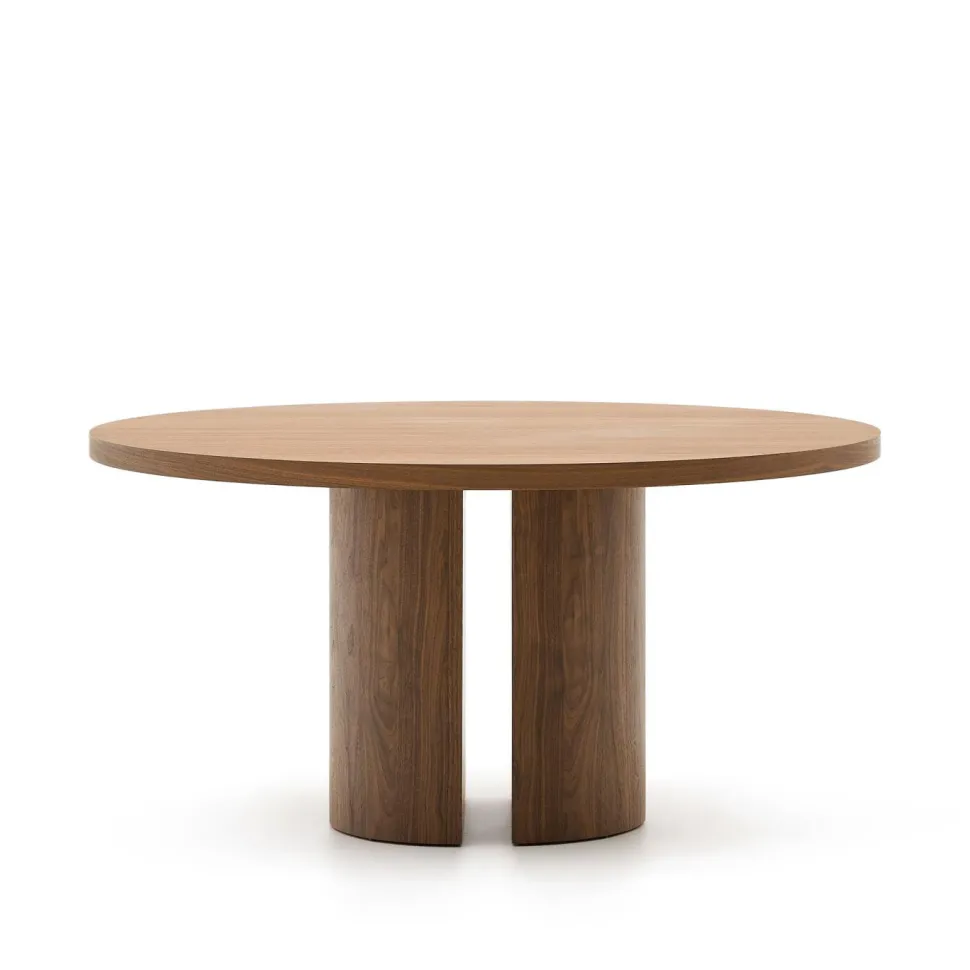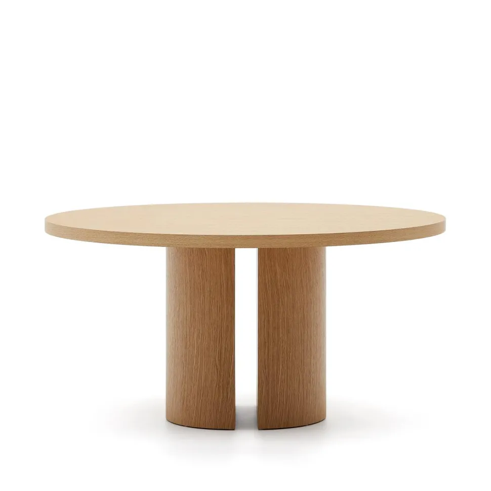 - Eettafel van eikenfineer met een natuurlijke afwerking.