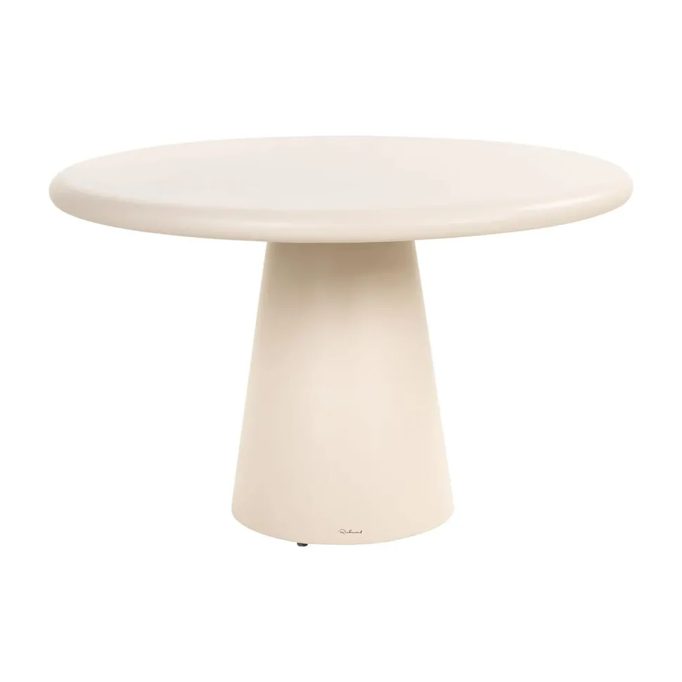De ronde eettafel Urban Bloom 130Ø geeft je buitenruimte of eetkamer een moderne en organische uitstraling. Gemaakt van weerbestendige materialen en perfect voor intieme diners of gezellige brunches.