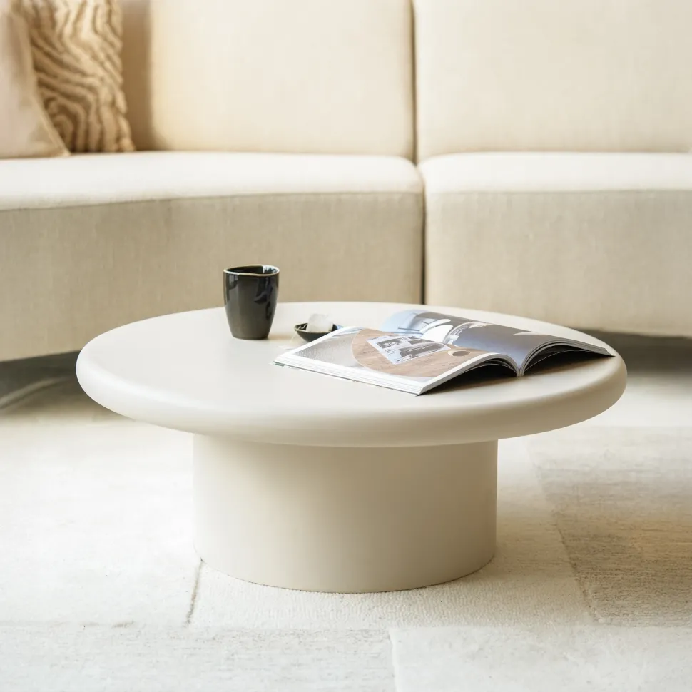 Ronde Salontafel Jade Magnesium oxide 80cm, kleur crème