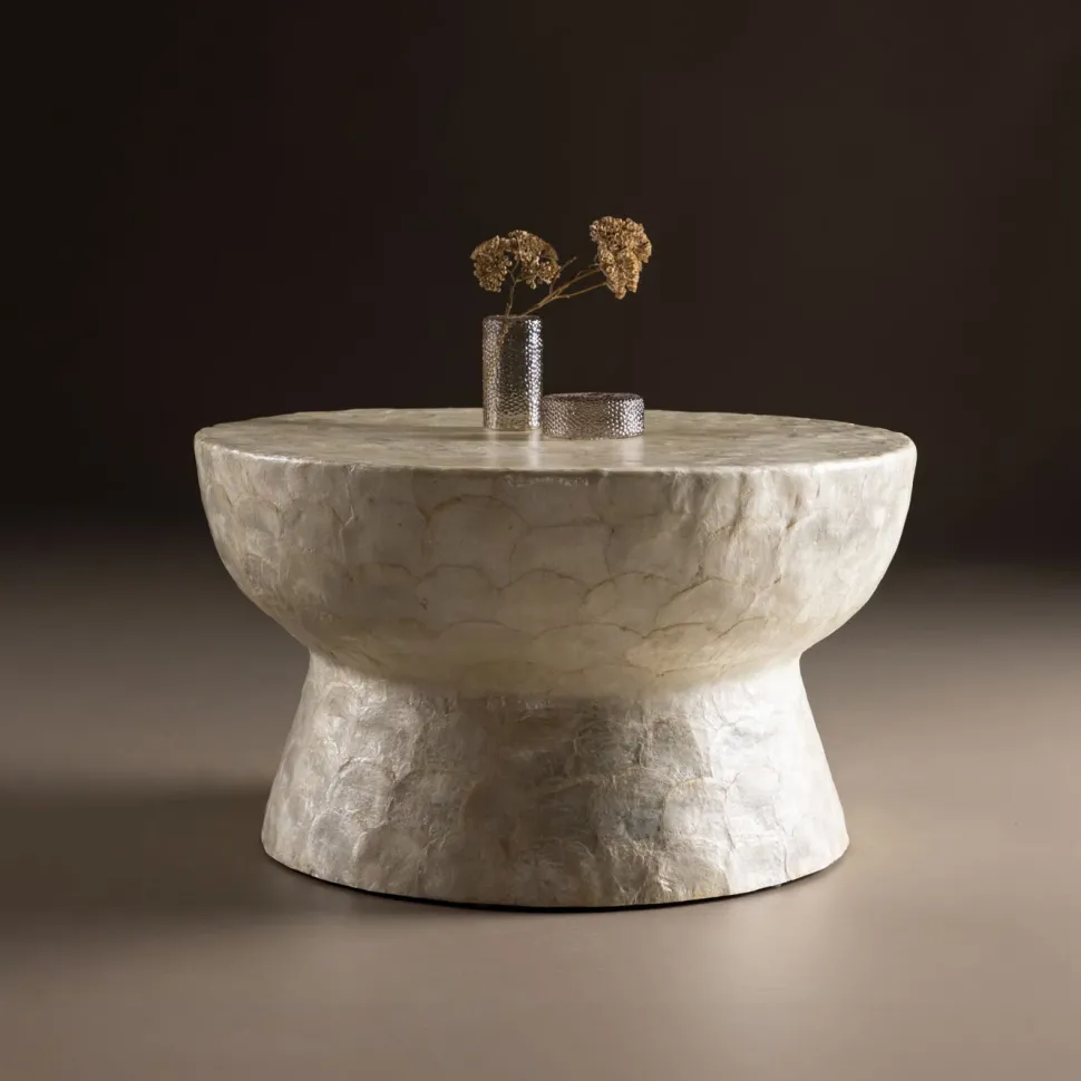 | Materiaal: | Table top: Beige Capiz Onderstel: Beige Capiz |