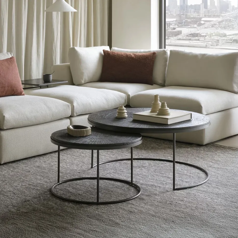 Onze Nesting koffietafels vormen het perfecte geheel, niet alleen door hun veelzijdigheid, maar ook door het samenvoegen van unieke materialen. Met de hand afgewerkte oppervlakken weerspiegelen een unieke stijl om diepgang te creëren, maar zijn tegelijk gemakkelijk te onderhouden. Laat de nesting koffietafels zich op een bijzondere manier aanpassen aan uw wensen, en dat in elke ruimte.