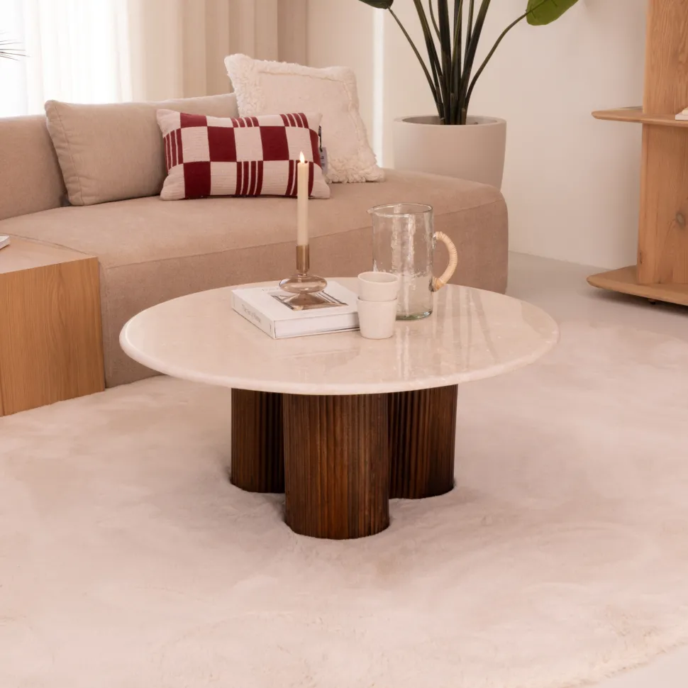 Ronde Salontafel Xavi Marmer en mangohout, 90cm