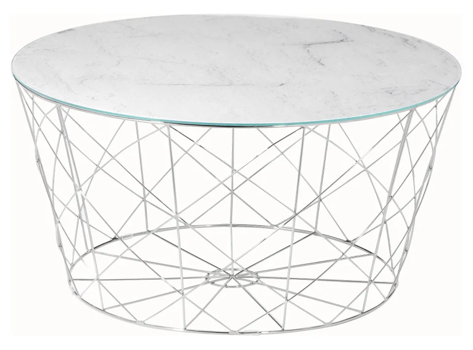 De ronde salontafel combineert modern design met een dosis extravagantie. Het glazen blad met onderliggende folie in marmerlook past perfect bij het metalen frame in goud. De banktafel biedt voldoende opbergruimte voor bijvoorbeeld fruit, knabbels of een bloemenvaas. Het frame kan gebruikt worden als opbergmand voor tijdschriften. Dankzij het aantrekkelijke ontwerp is deze salontafel met veel meubels te combineren en zal hij ook in jouw huis een passende plaats vinden.