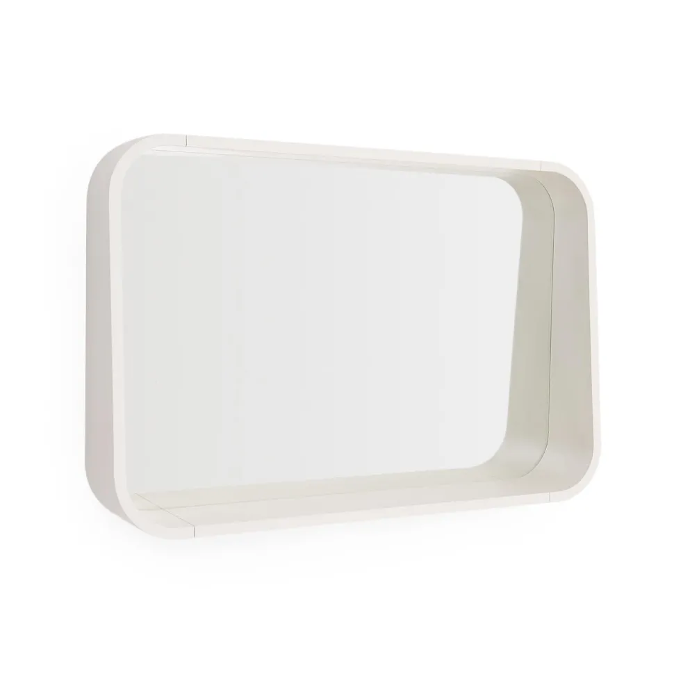 - Spiegel van 90 x 60 cm met lijst in essenfineer met beige gelakte afwerking.