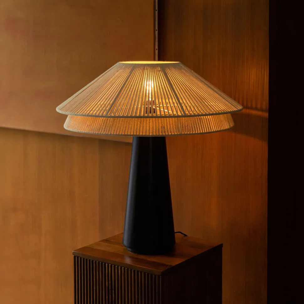 Met de Dutchbone Elon geef je je interieur zowel meer karakter als sfeer. Deze opvallende wand- en tafellamp vallen namelijk direct op. Dat komt door het contrast tussen zowel de kleuren als materialen. De lampen zijn namelijk gemaakt van zwart metaal en hebben een lampenkap van gespannen touw. De combinatie van licht en donker en natuurlijke materiaal met metaal, geeft een bijzondere look. Hiermee zijn de lampen dus zowel overdag als in de avond echte sfeermakers, die jouw huis omtoveren tot een warme plek – a place to warm your soul.
