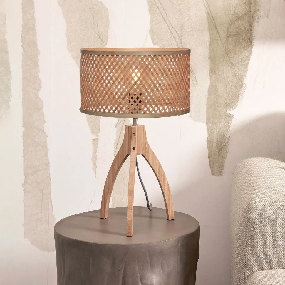 Tafellamp Java 3-poot, Bamboe