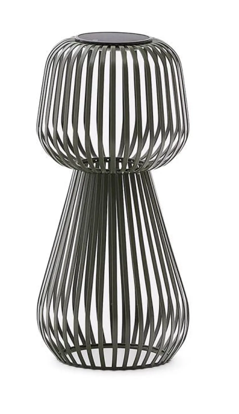 - Draagbare tafellamp van groen metaal met geïntegreerd verwijderbaar zonnepaneel.