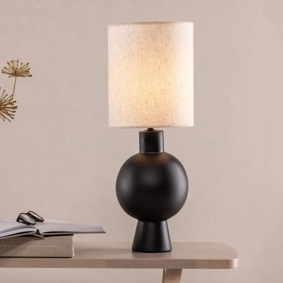 Met Sabrine haal je zowel een decoratieve als stijlvolle tafellamp in huis! De lamp heeft een voet van zwart beton die perfect gecombineerd wordt met de lampenkap in een trendy beige linnen stof. Het doordachte ontwerp en de zachte vormen maken van deze lamp een mooie blikvanger en een warme uitdrukking. Zet de lamp op het nachtkastje of voor het raam en geniet van een aangename gloed terwijl het een uniek interieurdetail wordt.
