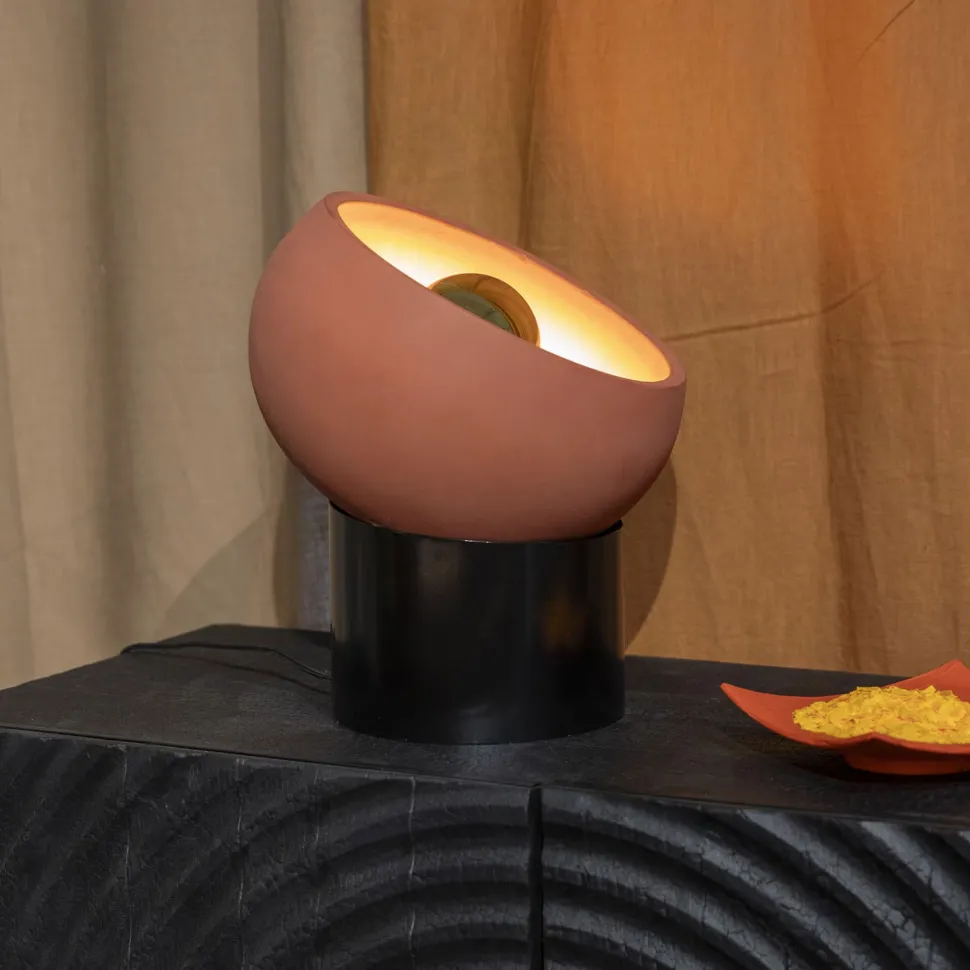 - Met een ronde, terracotta lampenkap