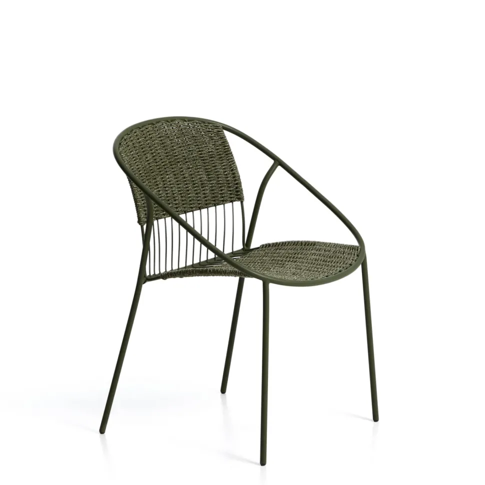 De Atrani stoel combineert lichtheid en kracht in een ontwerp dat bedoeld is om in alle rust te genieten van de beweging. De zitting en rugleuning, met de hand gevlochten met UV-bestendig touw, bieden comfort en duurzaamheid, ook buiten. De structuur is gemaakt van gegalvaniseerd staal voor stabiliteit en een hoge weerstand tegen roest en corrosie, wat een langere levensduur garandeert dan gewoon staal. Bovendien zorgt het stapelbare ontwerp voor optimaal gebruik van de ruimte wanneer de stoel niet wordt gebruikt.