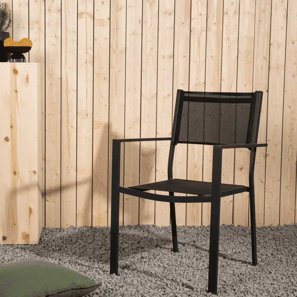 Lasheka met zijn industriële en stijlvolle ontwerp past uitstekend bij andere buitenmeubels. De witte constructie van aluminium en de grijze zitting van Textilene vormen een mooie blikvanger en geven je een praktische eetkamerstoel die lang meegaat. Nodig uit tot vele sociale momenten deze zomer! De stoel is stapelbaar.