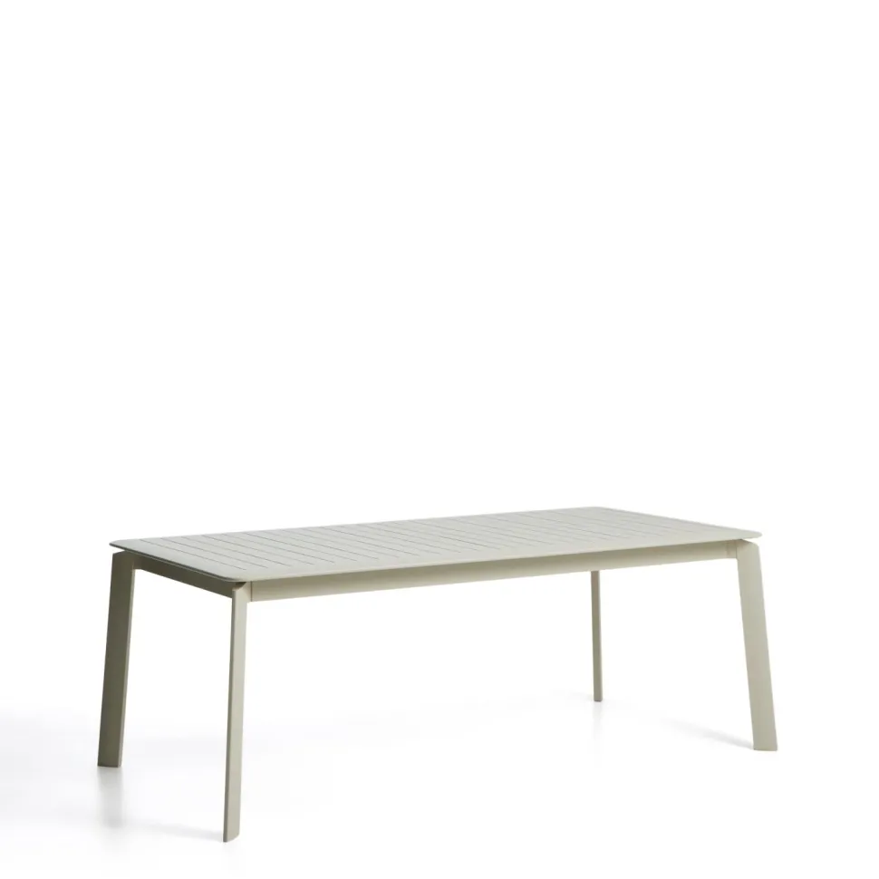 De Brela uitschuifbare tafel combineert eenvoud en functionaliteit in een ontwerp dat zich gemakkelijk aanpast aan elke gelegenheid. De aluminium structuur is sterk en sterk en blijft mooi doordat hij bestand is tegen roest, corrosie en blootstelling aan de zon. Het uitschuifbare systeem heeft een vlindermechanisme waarmee het eenvoudig te openen is en bevat een verborgen verlengstuk in de tafel, waardoor de grootte van de tafel kan worden aangepast aan de ruimte of het aantal gasten. De poten zijn voorzien van plastic beschermers die de vloer beschermen en de oppervlakken na verloop van tijd in goede staat houden.