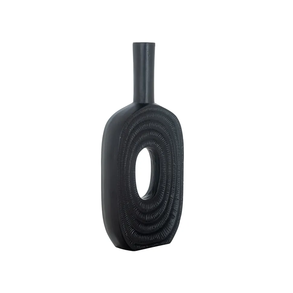De grote Emar vaas is een chique vaas gemaakt van zwart metaal met een ronde structuur. Het is een hoge vaas met een hoogte van 41 centimeter. Combineer deze vaas met de kleine Emar vaas of een van de andere vazen uit Richmonds collectie voor een speels resultaat. Let op: de vaas is niet behandeld met een waterafstotende coating, hierdoor is de vaas niet geschikt voor water.