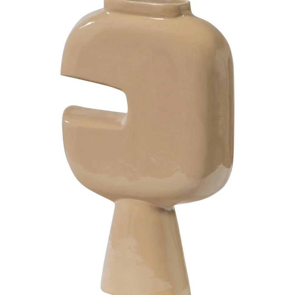 Geef jouw interieur een kunstzinnige touch met deze unieke vaas. Het abstracte design en de bijzondere open vorm maken dit stuk tot een echte eyecatcher, zelfs zonder bloemen. De zachte, beige tint zorgt voor een warme en moderne uitstraling, waardoor de vaas moeiteloos combineert met diverse woonstijlen. Plaats hem solo als statementstuk of combineer met andere decoratieve items voor een speels geheel.
