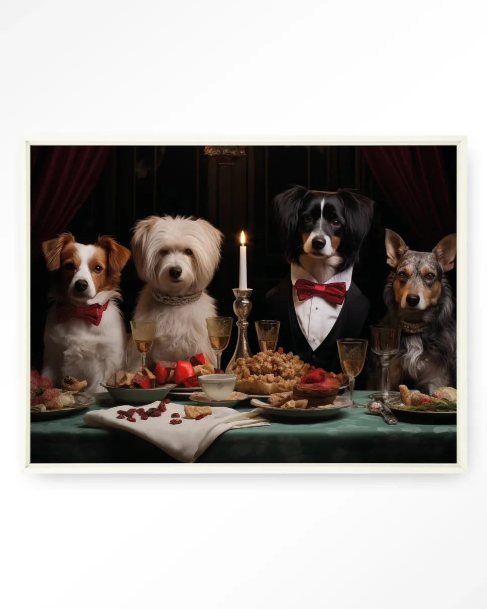 Wandkleed A Dog Dinner in maat en frame naar keuze